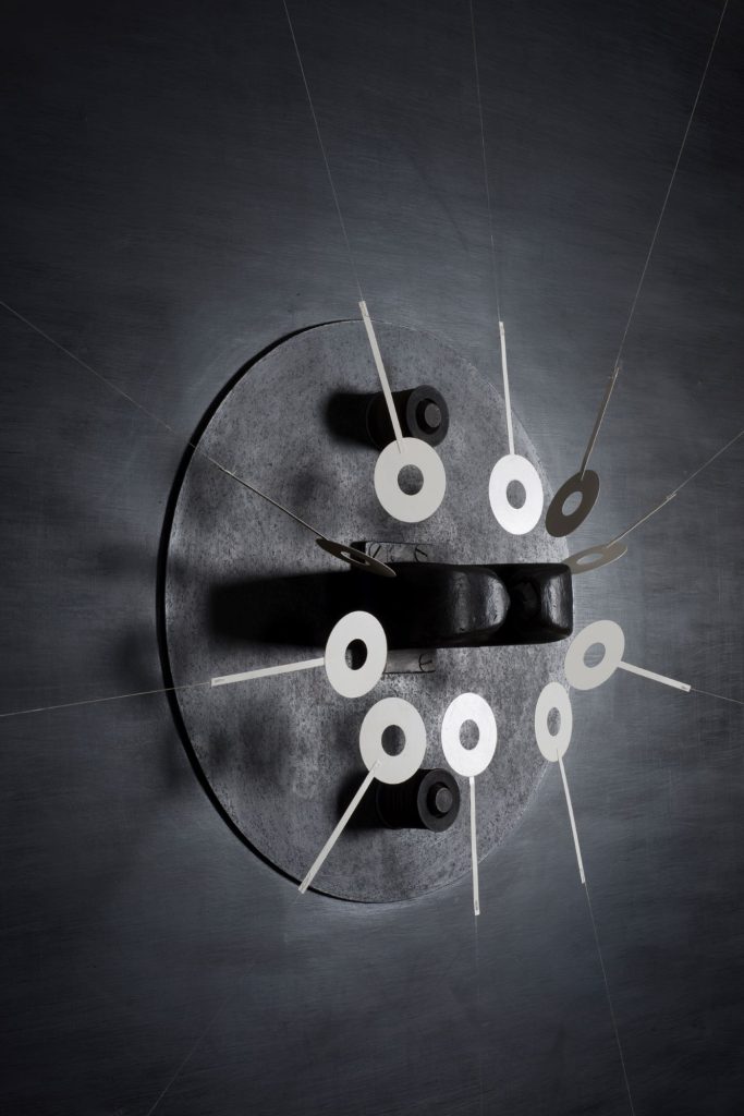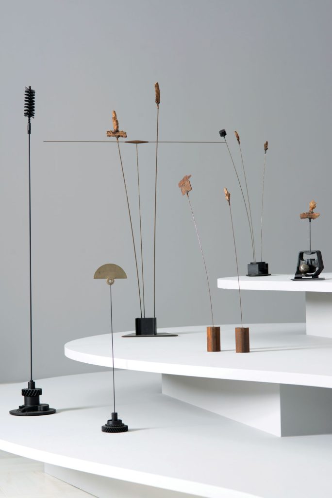 In Athens, the focus is on Takis’ relationship with magnetism—from his early Tele-sculptures and Tele-paintings, in which metals seem to float miraculously, to his electromagnetic spheres and musical sculptures.