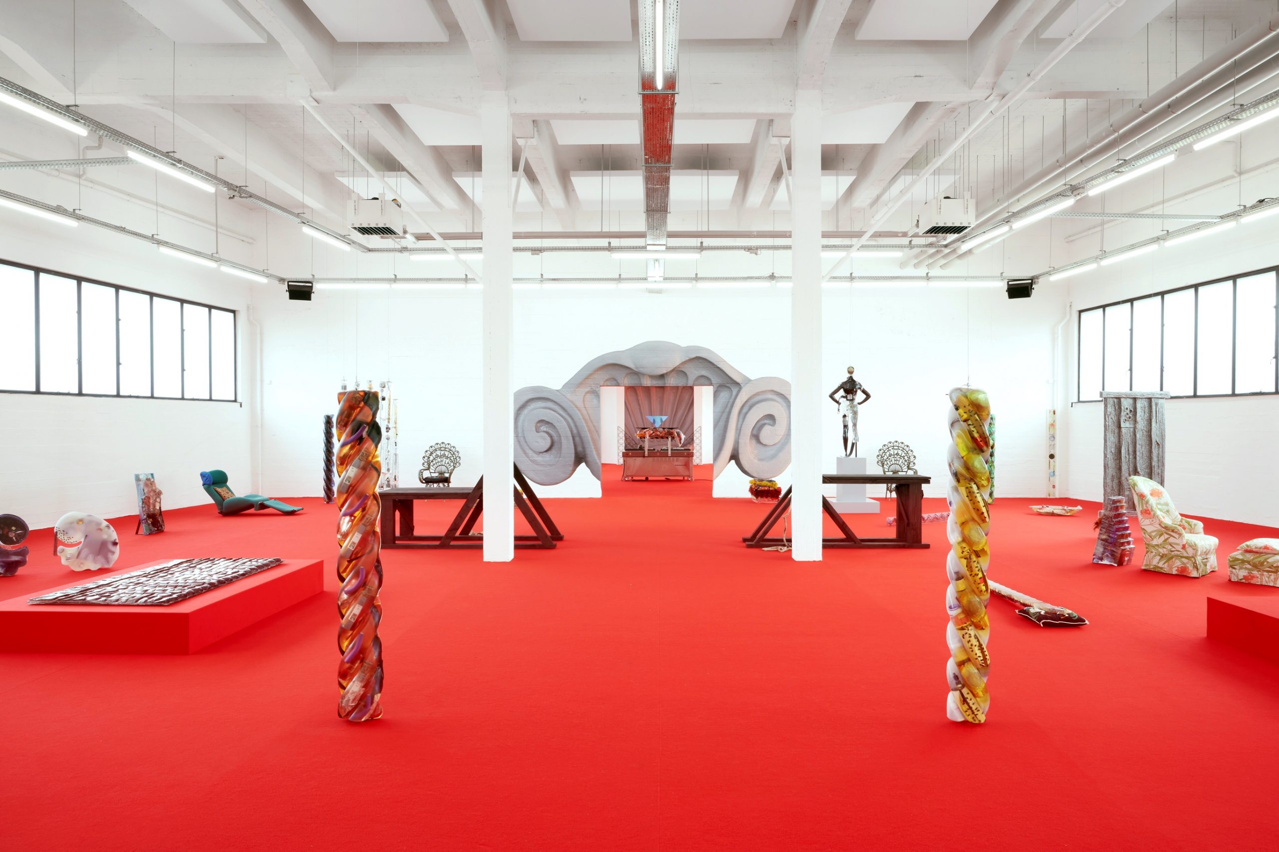 Installation view, Danai Anesiadou, D POSSESSIONS, 2023 at Wiels Contemporary Art Centre, Brussels (front to back): Ambiguous Angles, 2023; Vacuum, 2023. Courtesy of the artist Photo: we document art