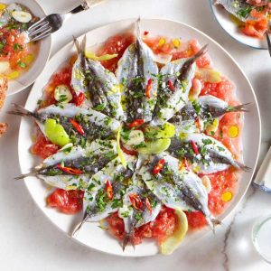 Tender squid stuffed with a flavorful mixture and baked to perfection, served on a vibrant pomegranate-tomato sauce. A light, Mediterranean-inspired dish that’s perfect for any occasion