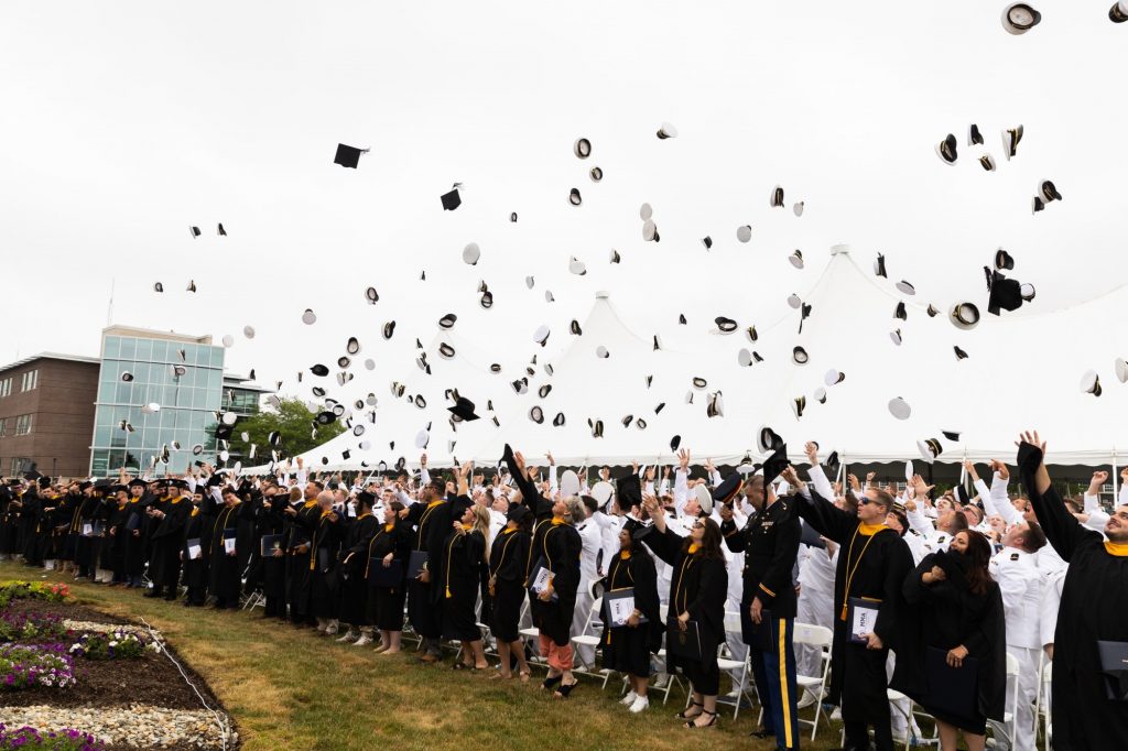 The commencement event at the Academy’s campus in Buzzards Bay took place on Saturday, June 22, in the presence of representatives of the U.S. Navy, the U.S. Coast Guard, officials of the Commonwealth of Massachusetts, like Greek-American House of Representatives member Steven G. Xiarhos, and global shipping executives.