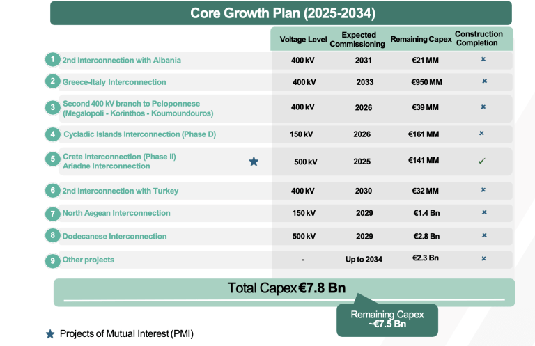 According to ADMIE’s latest presentation during the announcement of its nine-month financial results, the operator has lined up projects worth €7.5 billion covering the period from 2025 to 2034. These include both domestic and international electricity interconnections and supporting infrastructure.