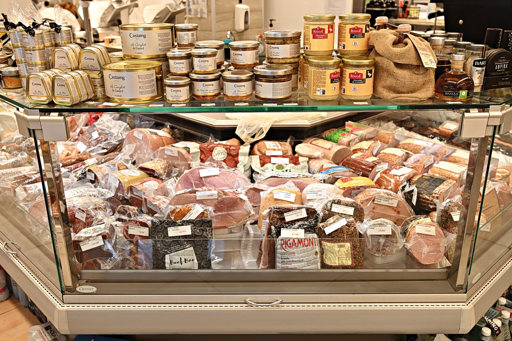 The pasta selection is excellent, featuring truffle tagliatelle, dinkel (spelt) spaghetti, and whole-wheat penne. These pair wonderfully with the shop’s sauces, olives, roasted peppers, capers in vinegar, organic basil, and high-quality cheeses.