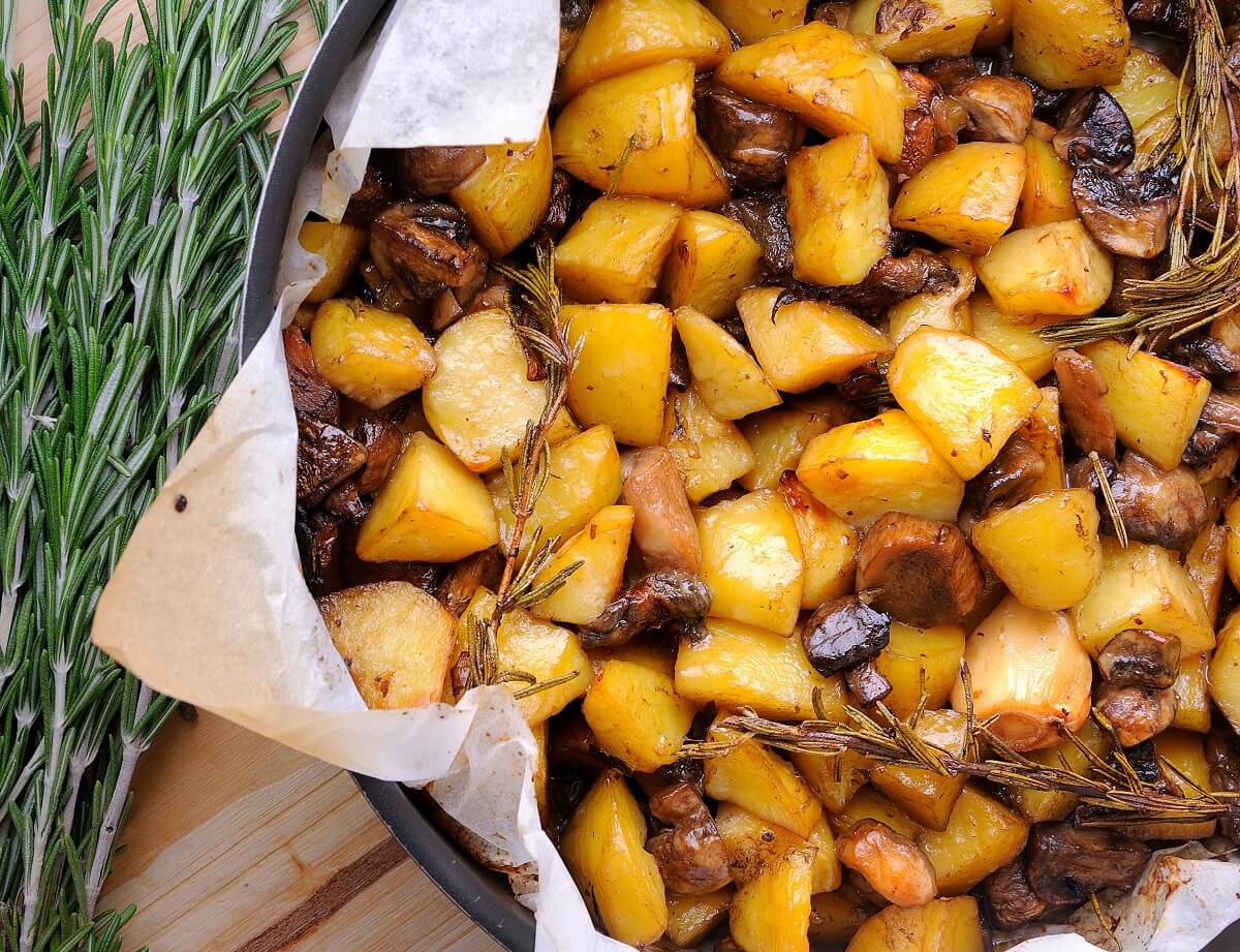 - Serve the oven roasted potatoes and mushrooms warm, as a side dish or main course, accompanied by fresh bread and a green salad.