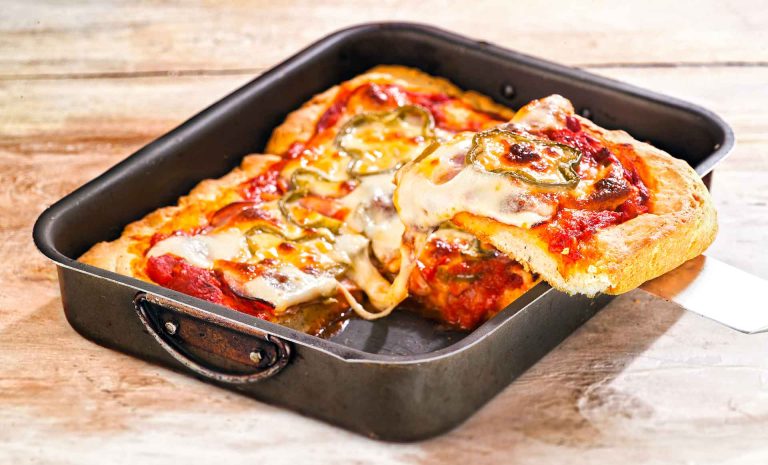 - Lightly oil a 34-36 cm (13-14 inch) shallow baking pan.