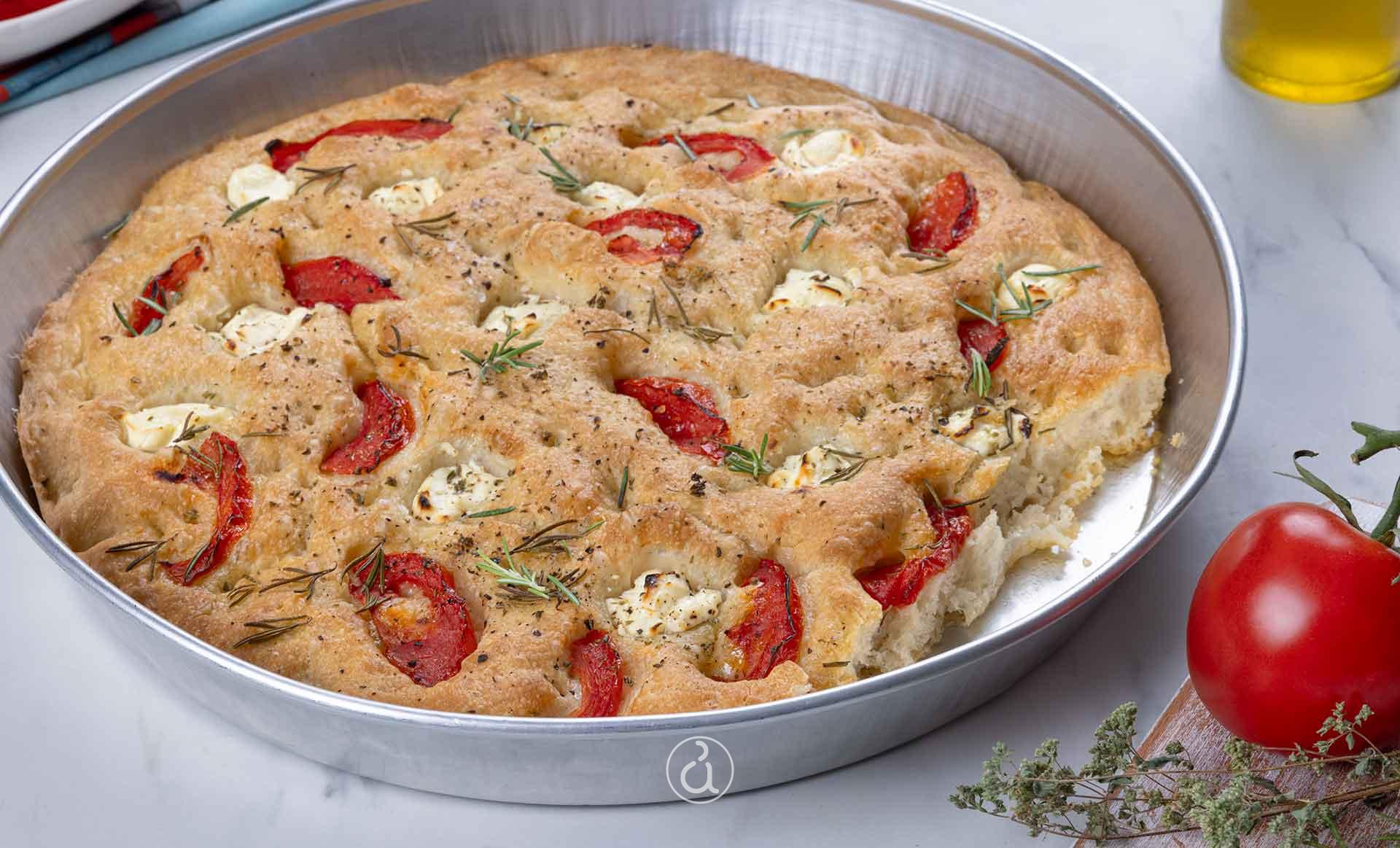 - Bake in the preheated oven on the middle rack for about 20 minutes, until the focaccia is puffed and golden.