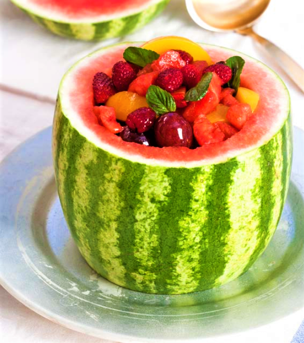 - Serve the whole watermelon with the fruit salad inside.