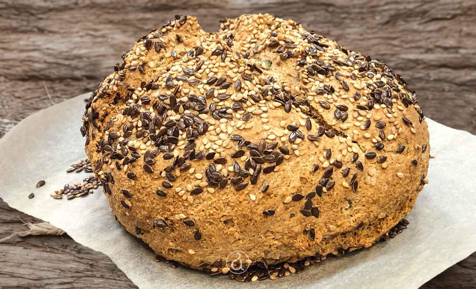 - Brush the bread with water and sprinkle sesame and flaxseeds.