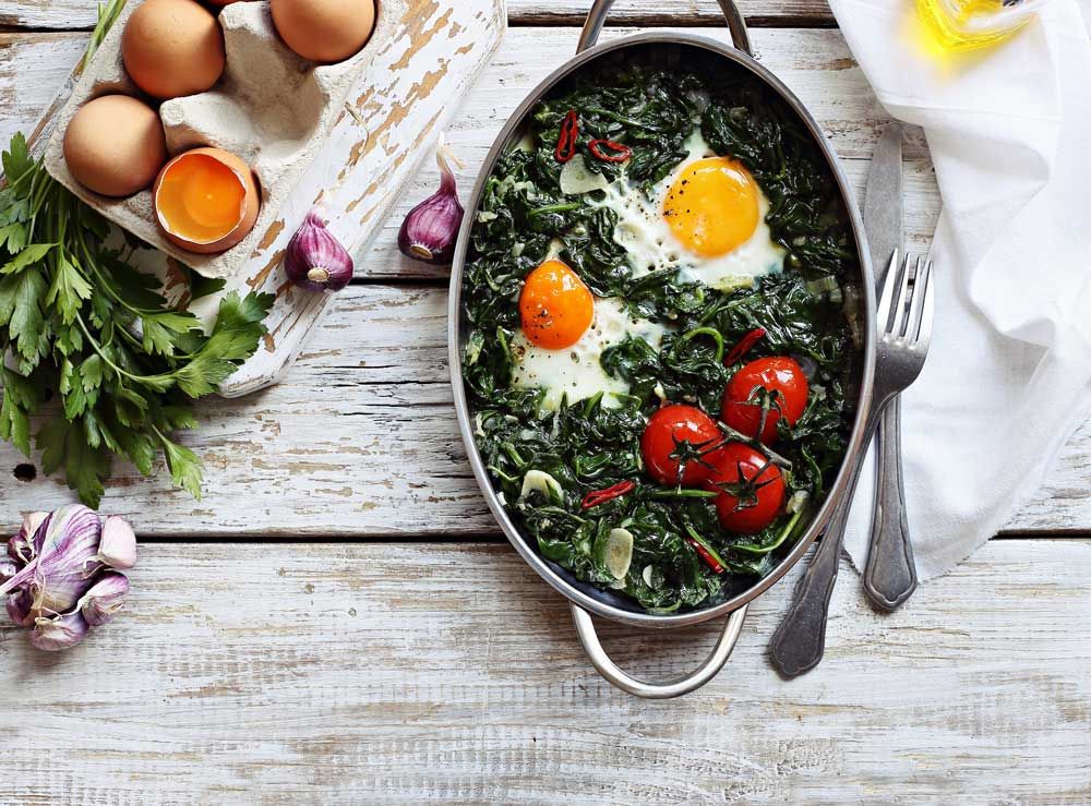Bake in a preheated oven at 200°C for 15 minutes or until the eggs are cooked.