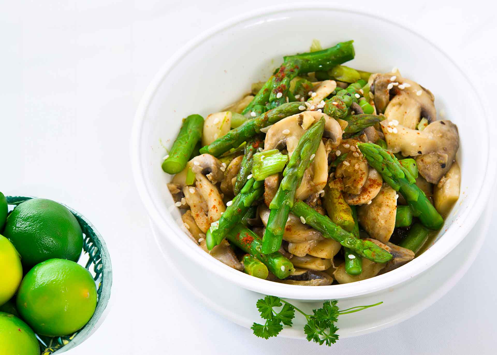 A light and nutritious stir-fry featuring earthy oyster mushrooms and tender asparagus, finished with fragrant sesame oil and a zing of lime. Ideal for a quick meal that’s low in calories yet rich in flavor and health benefits