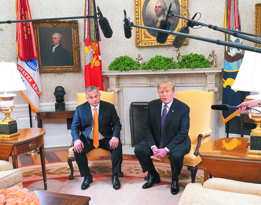 epa07567992 US President Donald J. Trump speaks to the media as he meets with the Prime Minister of Hungary Viktor Mihaly Orban at the White House, Washington, DC, USA, 13 May 2019. Their meeting marks the first time a US president has granted Orban a formal visit in more than 20 years. EPA/Chris Kleponis / POOL