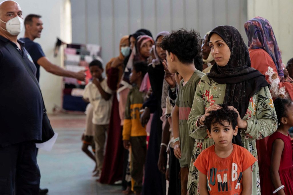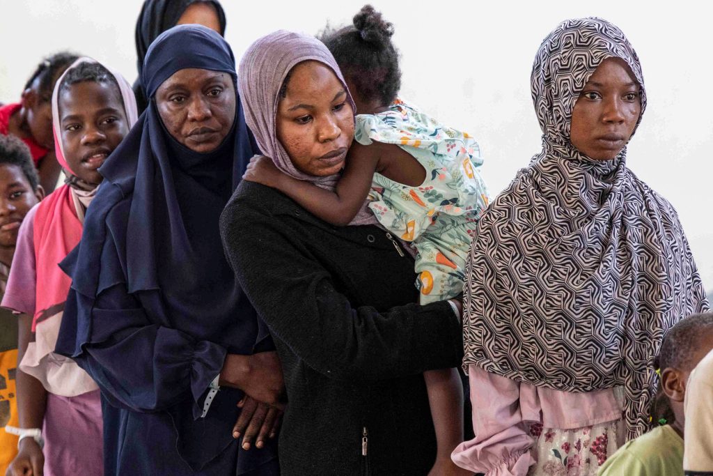 Newly-arrived migrants wait in line in their temporary shelter at a municipal hall in the town of Agyia, on the island of Crete, Greece, July 10, 2025. REUTERS/Nicolas Economou