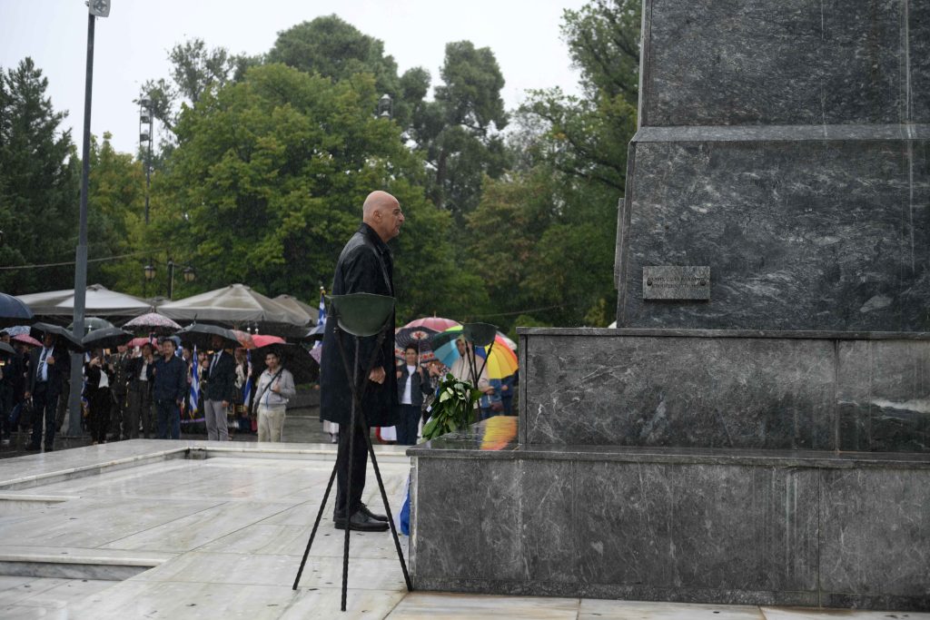 The Defence Minister attended a memorial service at the Metropolitan Church of Saint Basil, followed by wreath-laying ceremonies at the Monument of Archpriests and Elders and at the equestrian statue of Theodoros Kolokotronis.