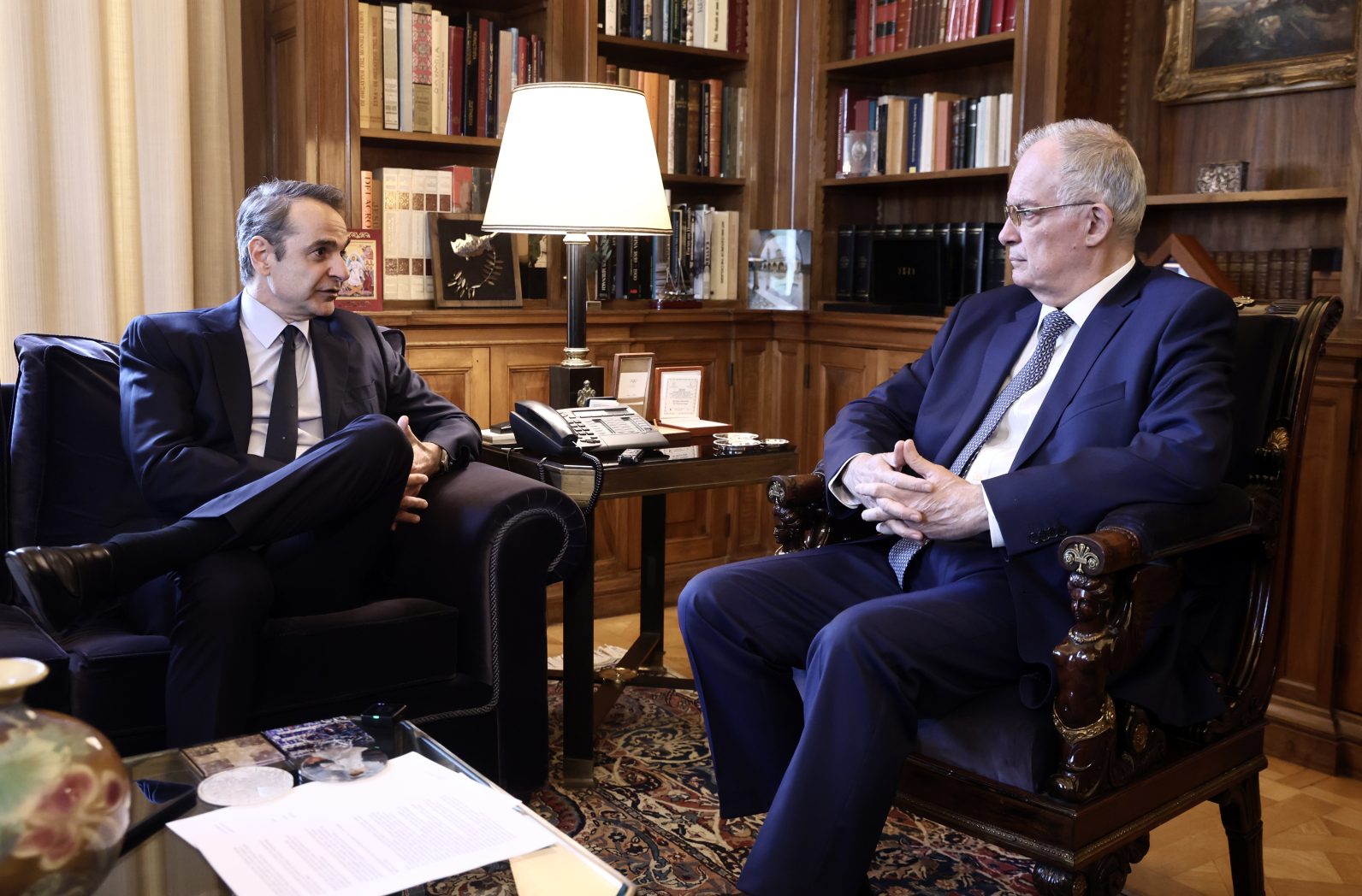 Greece‘s Prime Minister Kyriakos Mitsotakis met with President of the Republic, Konstantinos Tasoulas for their first scheduled monthly briefing at the Presidential Mansion, οn Holy Tuesday, April 15. The monthly meeting is a tradition continued from the tenure of former President Katerina Sakellaropoulou.