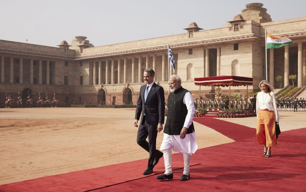 The Prime Minister of India, Narendra Modi welcomed Greek Prime Minister Kyriakos Mitsotakis, and his wife Mareva Grabowski-Mitsotakis, at the presidential residence Rashtrapati Bhavan, in New Delhi this morning. In their joint statements the two leaders emphasized that their key objectives is the deepening of cooperation between Greece and India across multiple sectors.