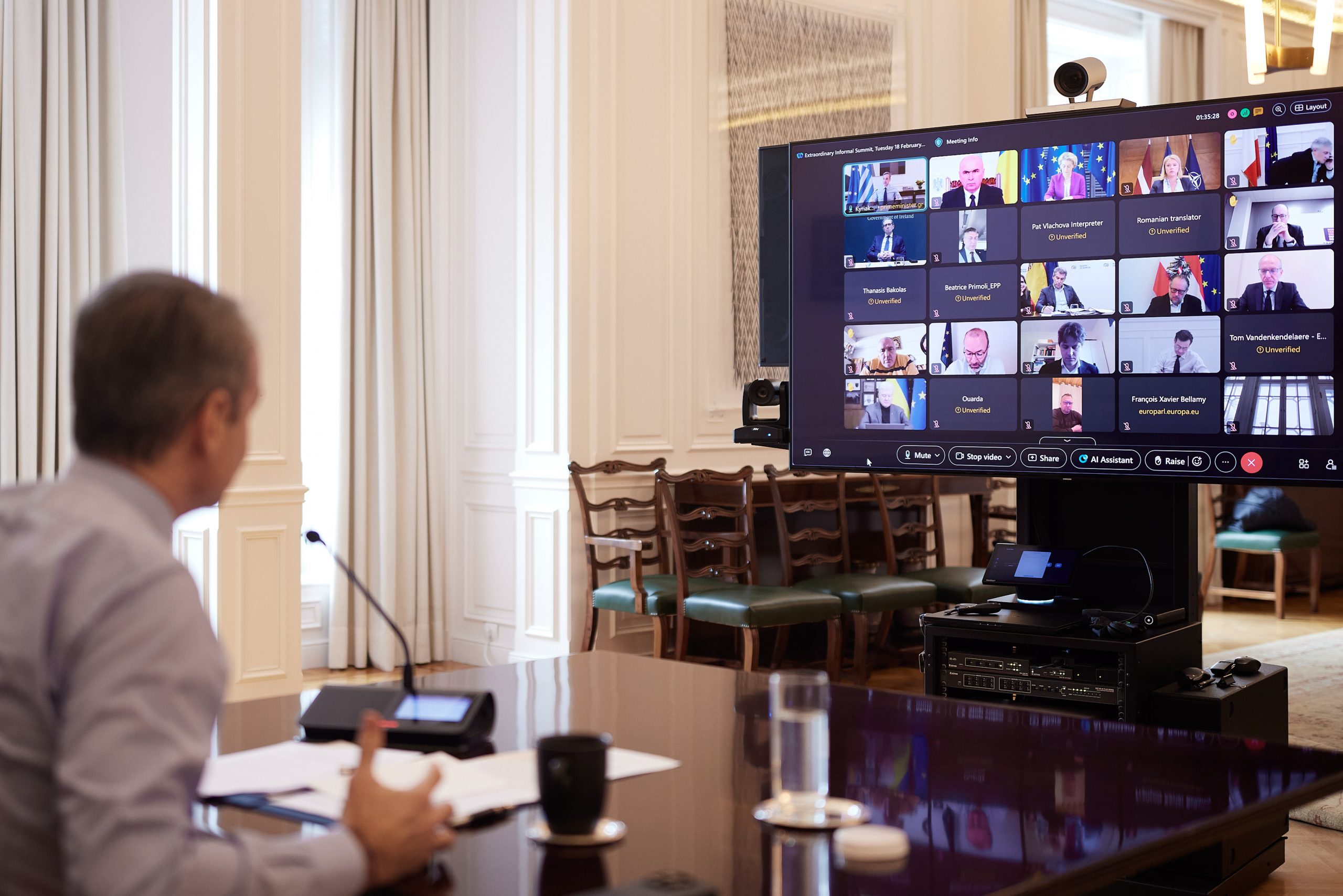 Ο Πρωθυπουργός Κυριάκος Μητσοτάκης στην έκτακτη Τηλεδιάσκεψη των ηγετών του Ευρωπαϊκού Λαϊκού Κόμματος (ΕΛΚ), Τρίτη 18 Φεβρουαρίου 2025.