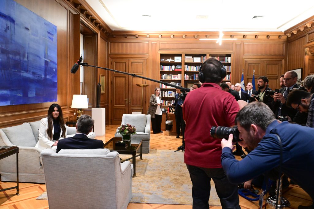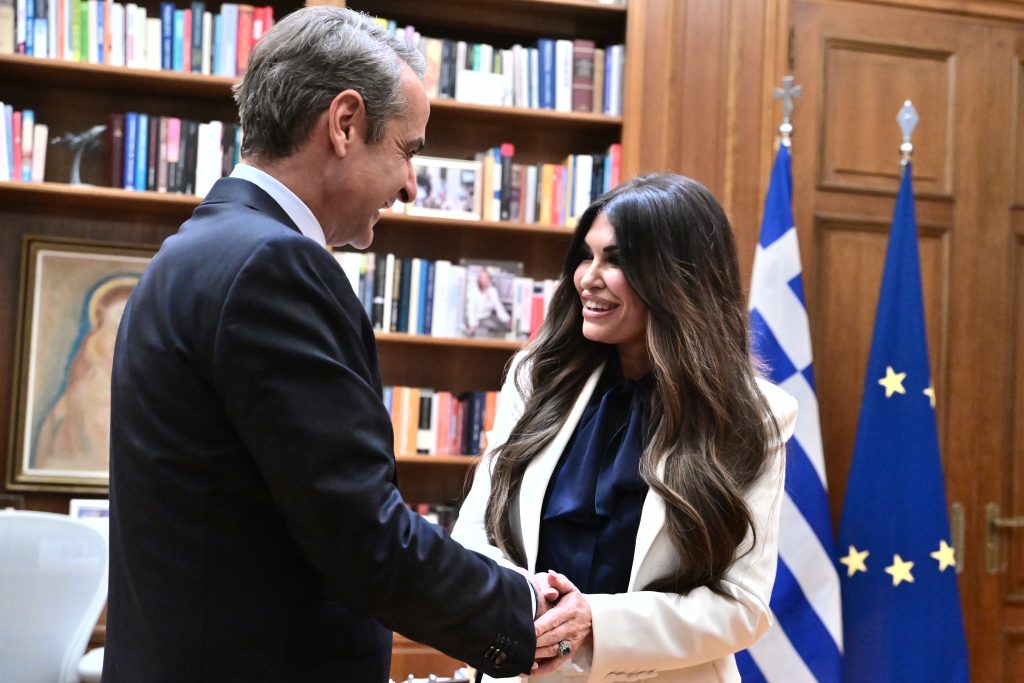 Prime Minister Kyriakos Mitsotakis met on Wednesday morning with the new U.S. Ambassador to Greece, Kimberly Guilfoyle, at the Maximos Mansion in Athens. The meeting marked one of Guilfoyle’s first official engagements since assuming her post, highlighting the strength and continued expansion of U.S.–Greek relations.