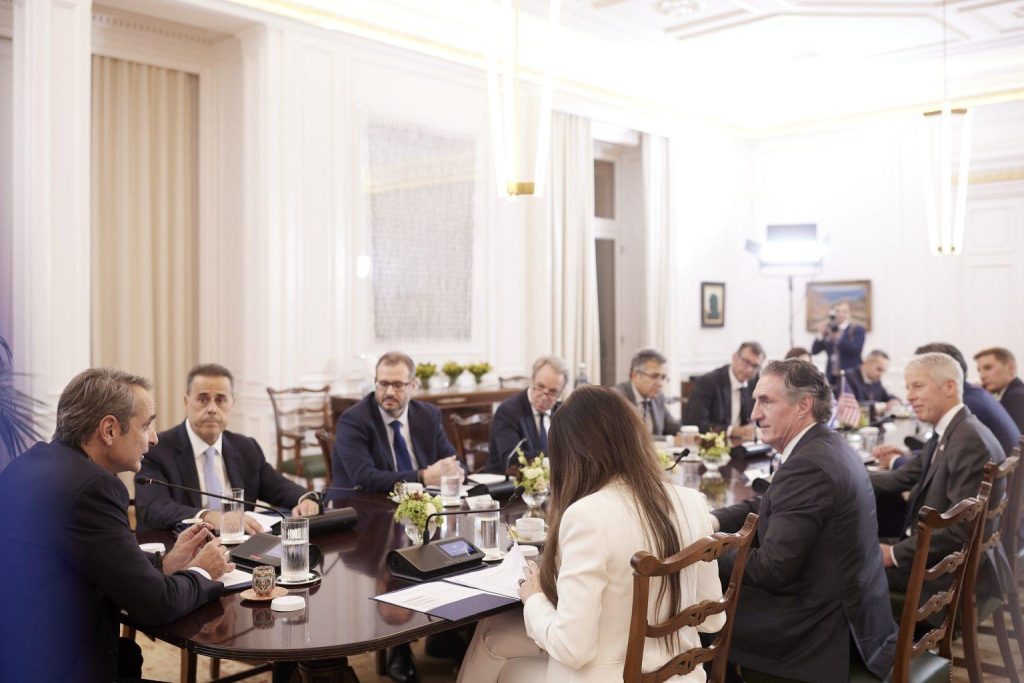 The high-ranking US delegation in Athens for the meeting includes Michael Rigas, the acting Administrator of the General Services Administration, as well as Jacob Helberg, the Under Secretary of State for Economic Growth, Energy, and the Environment, both of whom were at the Maximos Mansion meeting on Wednesday with Mitsotakis and the Greek delegation.