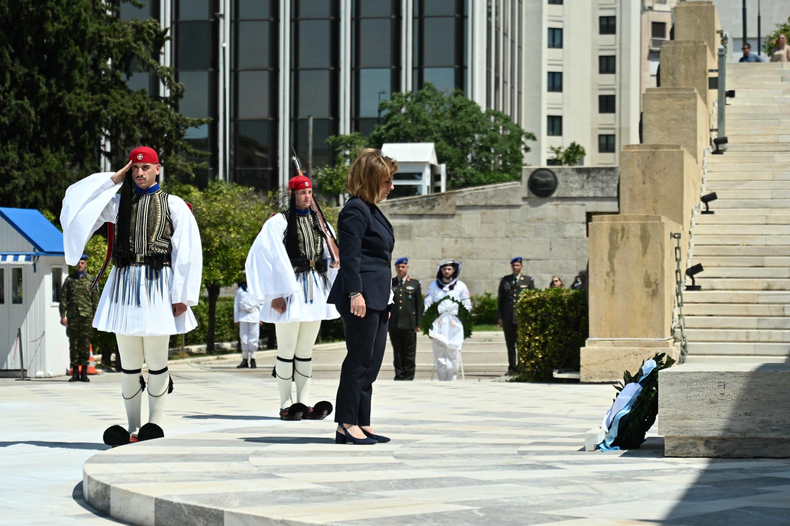 Afterwards, Sakellaropoulou emphasized: “We do not forget the heroes, both Cypriot and Greek, who resisted the invader with unparalleled bravery and sacrificed their lives fighting against a superior enemy. We continue to support the families of the missing until the fate of all their loved ones is determined. Achieving justice for the sacred Cypriot struggle through a fair and sustainable solution based on United Nations resolutions and European law remains our highest goal and duty to history.”