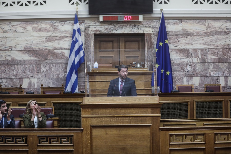 Ομιλία του προέδρου του ΠΑΣΟΚ-ΚΙΝΑΛ, Νίκου Ανδρουλάκη στην Κοινοβουλευτική Ομάδα του ΠΑΣΟΚ-ΚΙΝΑΛ. Στην Βουλή στην Αθήνα στις 16 Δεκεμβρίου 2022.