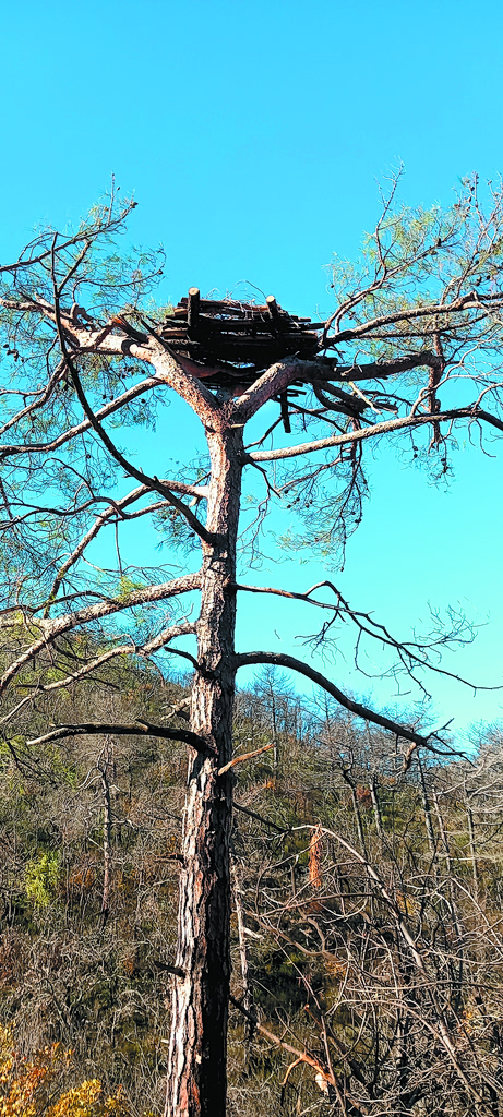 For the highly valuable cinereous vulture—a species with a wingspan of up to three meters and the largest vulture species in Europe—NECCA took swift action to prevent a population decline after the fire. “It is a large-bodied species that requires only large, mature trees to nest and is also very faithful to its colony. Thus, immediately after the fire, in the autumn of 2023, we created 15 artificial nests on burned trees so that cinereous vultures seeking to nest would have an alternative. This year we installed another 15 nests.”