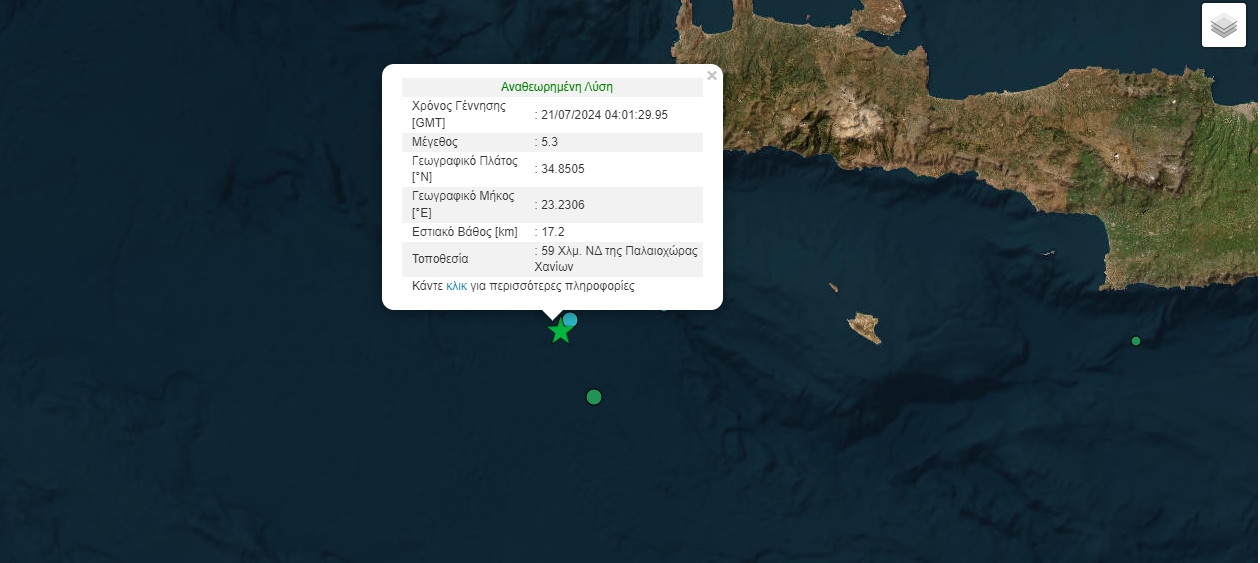 Specifically, the tremor was pinpointed at 59 kilometers south-southwest of the town of Palaiochora, Crete, and at a depth of 17.2 kilometers.