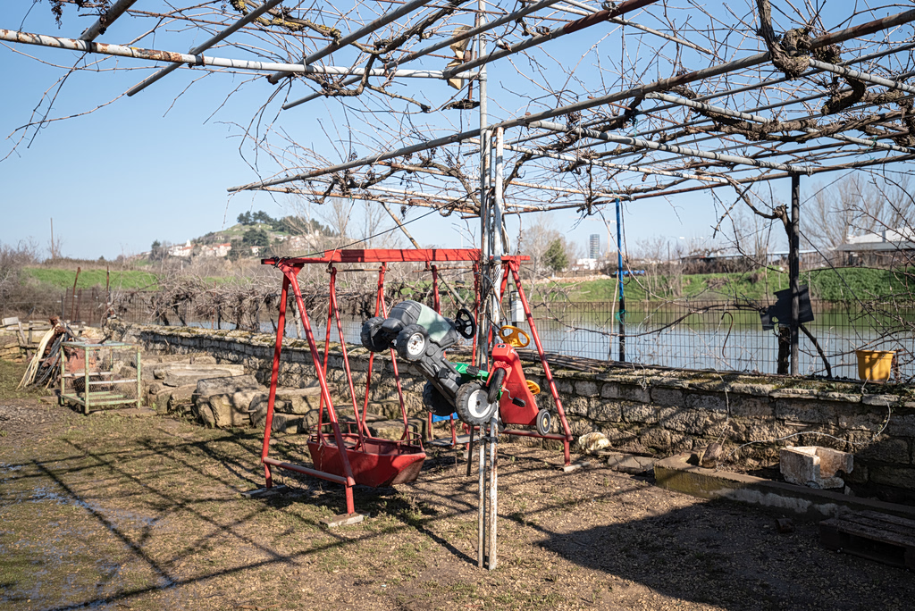 Children’s toys tied to high bars to protect them from being swooped away by the floods. Photo by Giorgos Kalkanidis