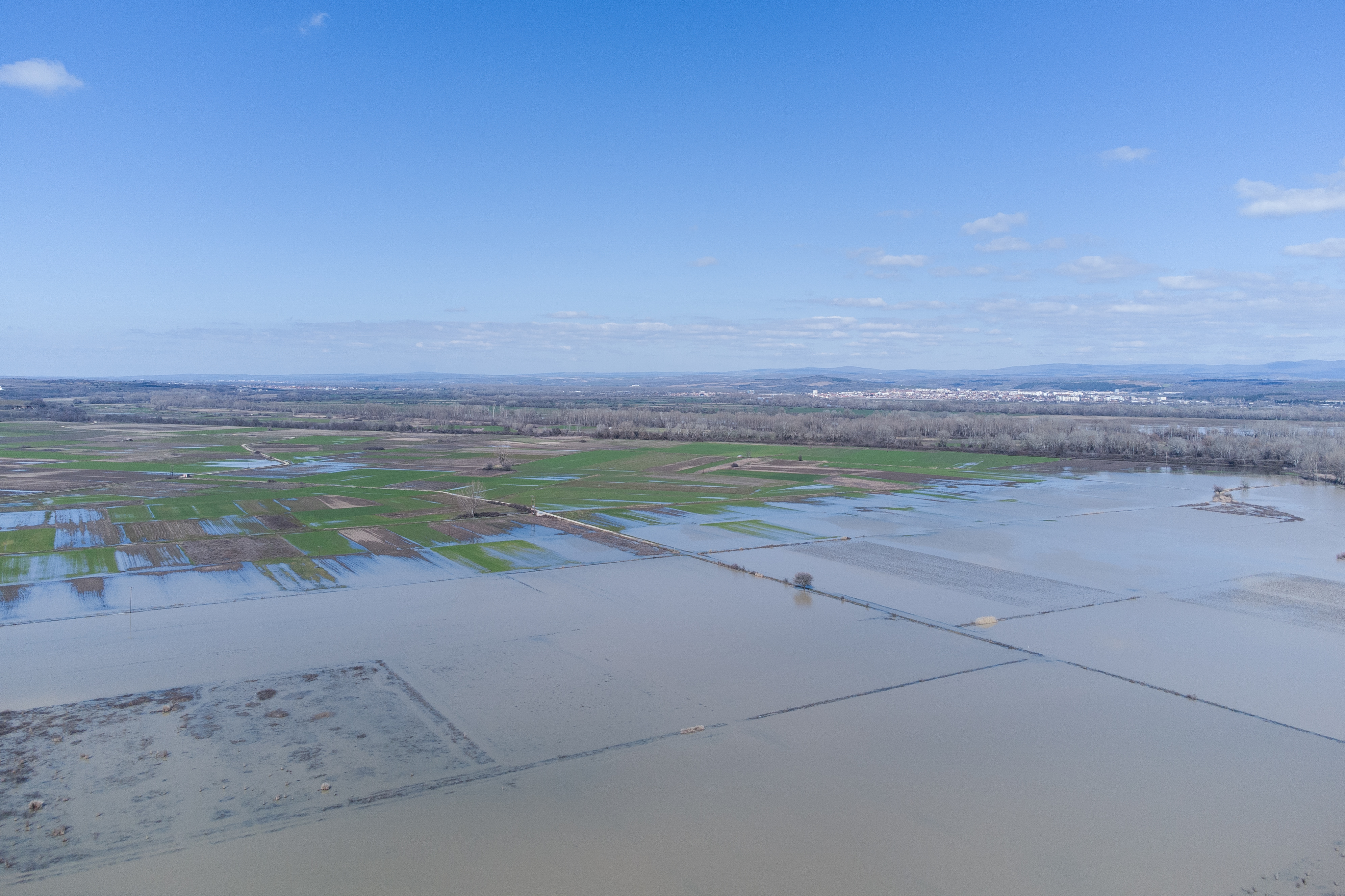 In places, the water reaches roads and creeps toward homes. Elsewhere, destruction arrives silently where it hurts most: in the soil that should now be worked for spring sowing.