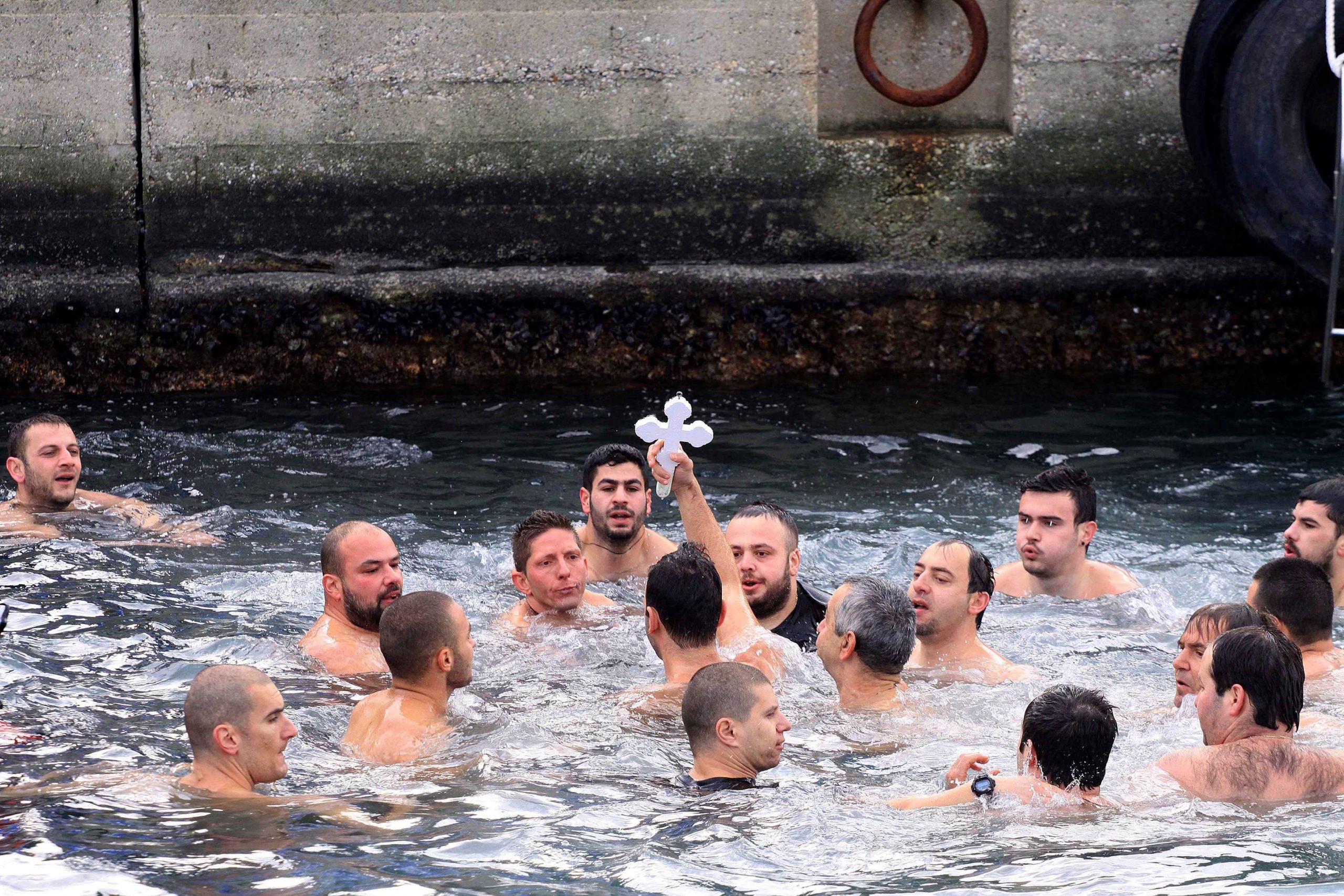 An Orthodox Priest will bless the body of water and then throw a Cross into the water. Men and boys, but now women and girls in some cases, can be seen plunging into the water and racing to be the first to retrieve it from the seasonally frigid waters. It is believed that the individual who retrieves the Cross will enjoy good fortune throughout the entire year.