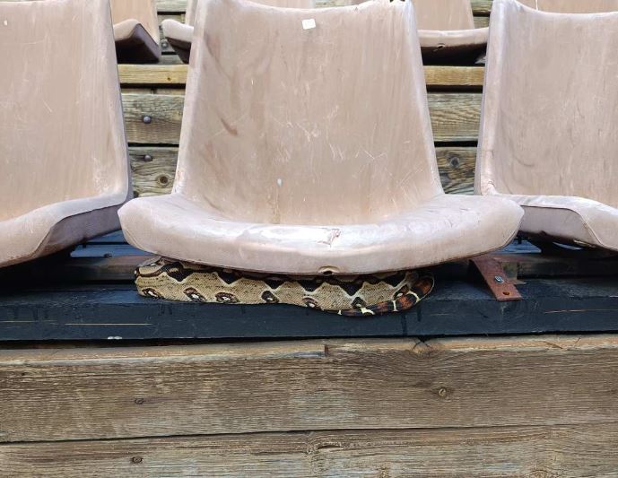 A boa constrictor was found under a seat at the downtown Athens outdoor theater of “Dora Stratou” on Sunday morning.