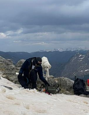 “We were climbing to reach the summit… and as we were going up, we heard some cries. The little dog must have noticed us and seen us first. We hadn’t seen him because he’s white and blended into the snow, but he was calling for help. So, our group split in two: most continued the ascent, and the more experienced climbers went to find the dog and carry out the rescue,” according to Marina Koraki, a member of the climbing team that rescued Asproulis.