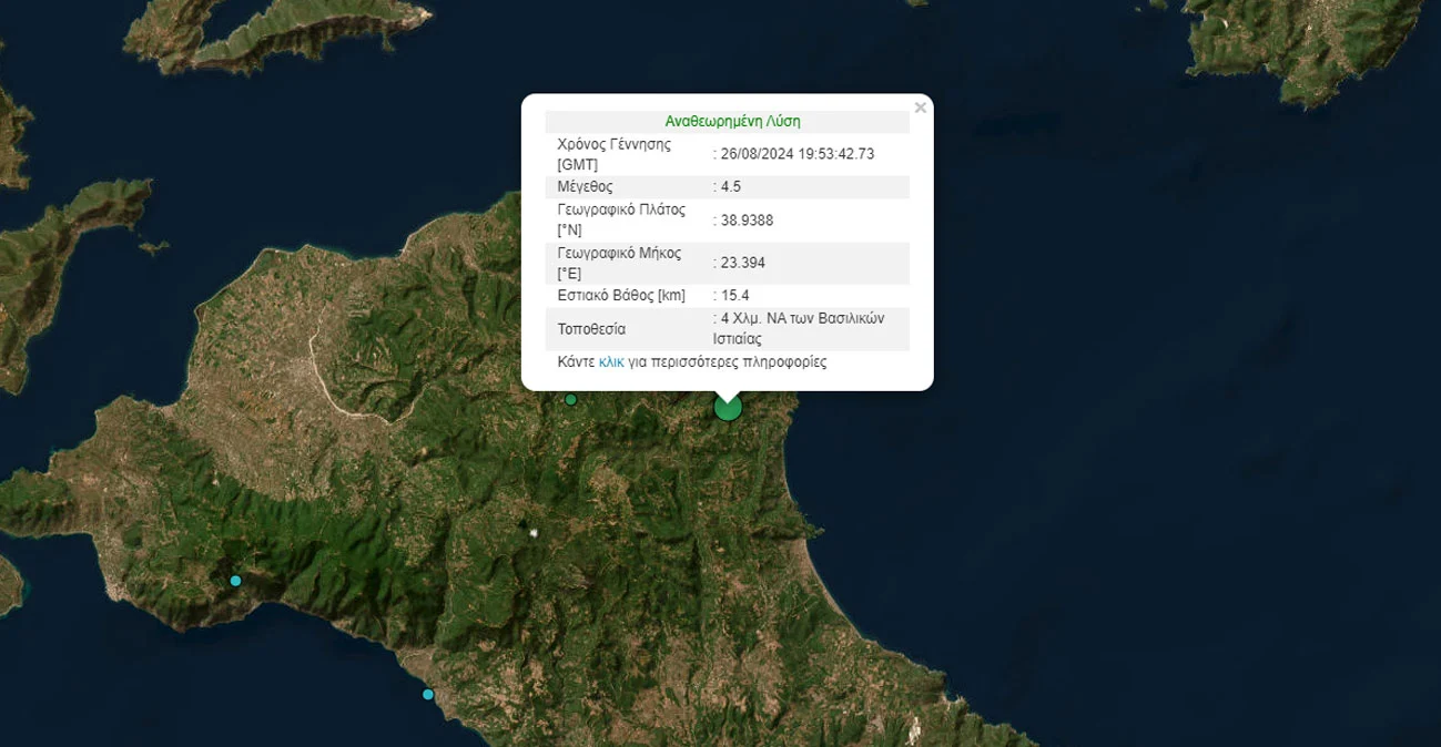 The tremor was felt in the greater Athens area to the southwest and in the Sporades islands to the north of Evia, while significantly shaking the northern part of the large island straddling the eastern seaboard of the central mainland.