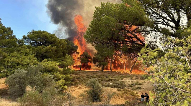 The fire in Palaia Fokaia, which began in the early afternoon in the settlement of Thymari, has now spread to the borders of the municipalities of Saronikos and Lavreotiki. Local officials describe the situation as “very difficult,” with the fire moving dangerously close to residential areas.
