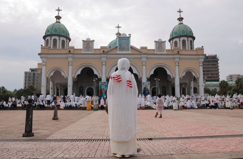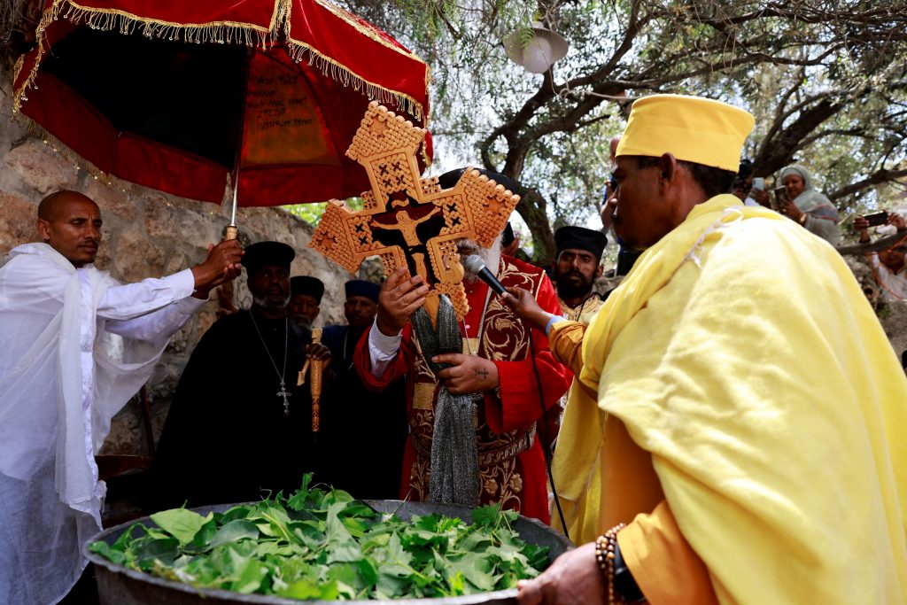Members of the Ethiopian Orthodox clergy attend the Washing of the Feet ceremony on Easter Holy Week at the Ethiopian section of the Church of the Holy Sepulchre in Jerusalem’s Old City, May 2, 2024. REUTERS/Ammar Awad