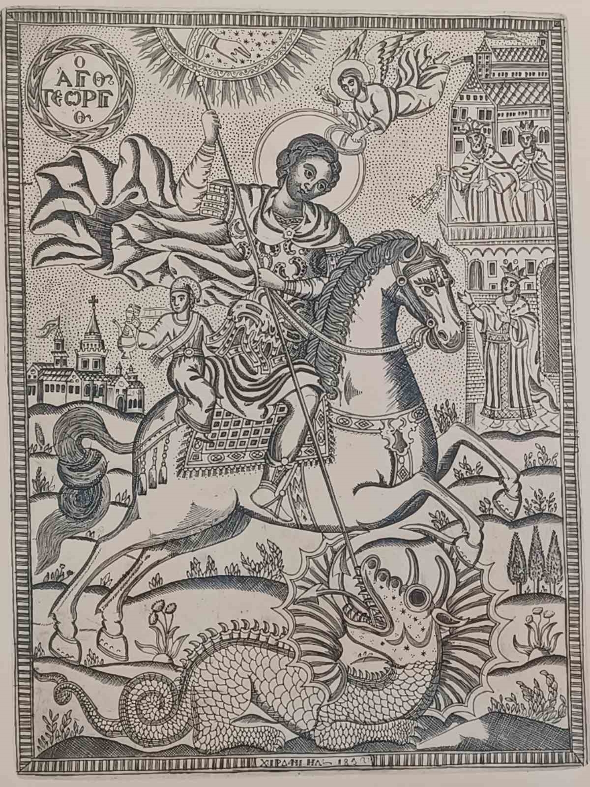 Depicted as a trophy bearer and champion, St. George is at the center of numerous parables and traditions, of which the one that refers to the slaying of a dragon and the rescue of the princess.