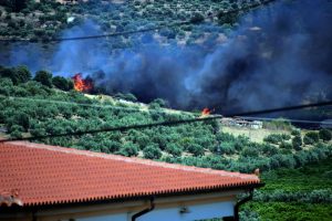 The Greek Fire Department dispatched 16 vehicles with 32 firefighters to an area near the suburban town of Koropi in the East Attica regional Unit after a fire broke out on the side roads of Varis-Koropiou Avenue. Two aircraft and 2 helicopters are also assisting in the battle. Intense winds are hindering efforts to extinguish the fire which is out of control.