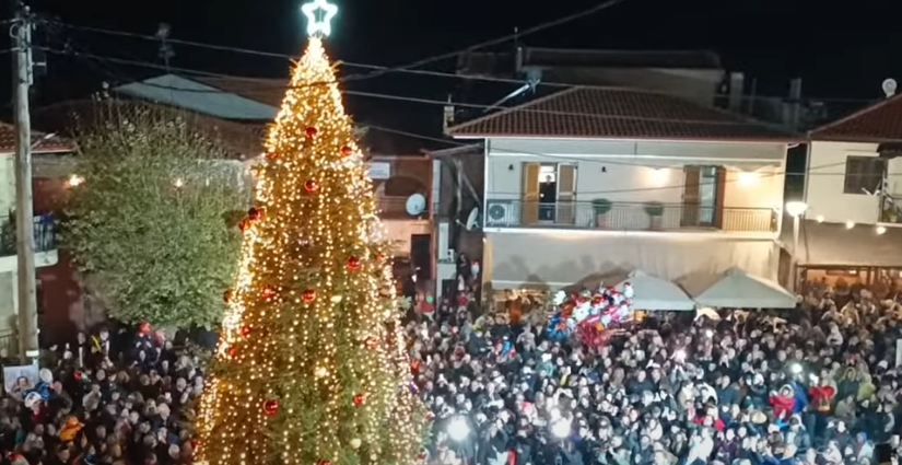 A 13-meter fir tree decorated with some 20,000 lights and Christmas regalia was lit up in the village square, which is located in the Sithonia peninsula of verdant Halkidiki prefecture of northern Greece – the center of Greece’s Christmas tree cultivation and production.