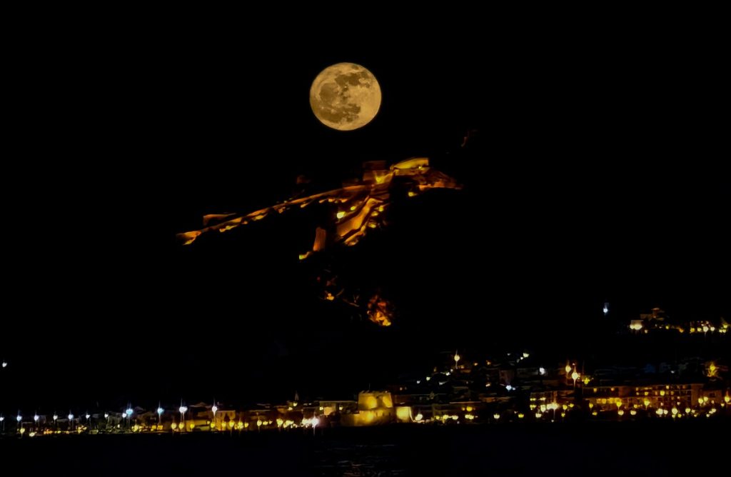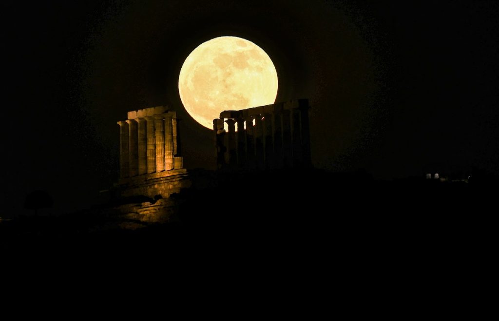 Onlookers were able to snap magical shots of the full moon over the Temple of Poseidon in Sounio and the Palamidi Fortress in Nafplio.