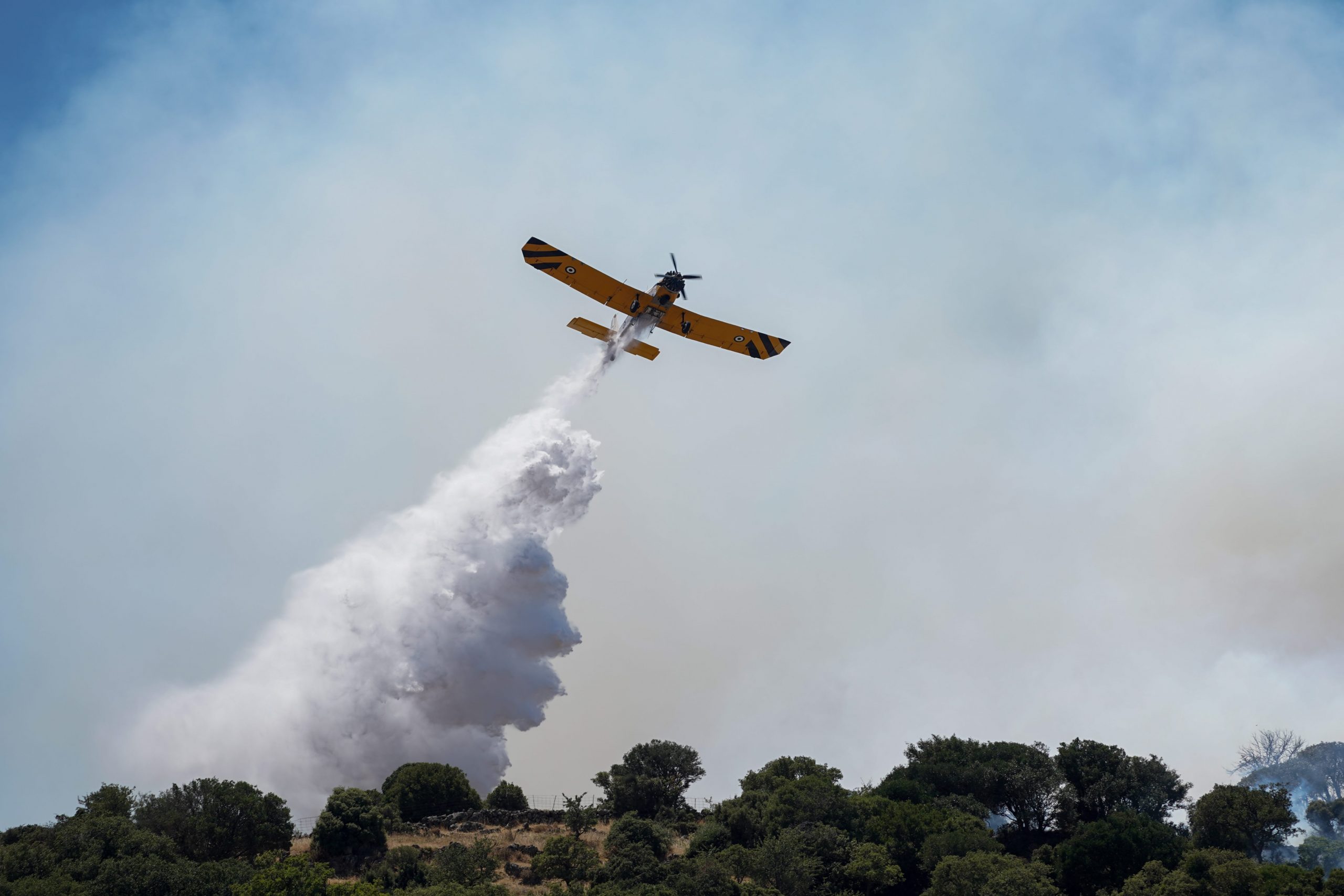 The fire currently has a front of 4-5 kilometers and the flames are around 20-25 meters in height. Fire fighters are constantly forming anti-fire zones in an attempt to contain it.