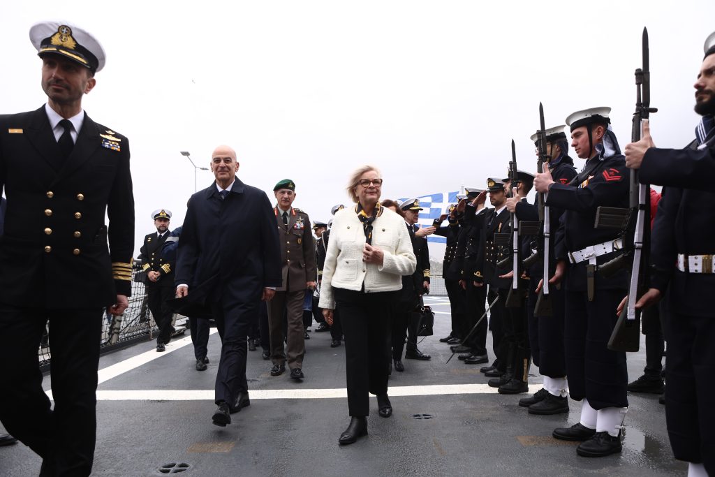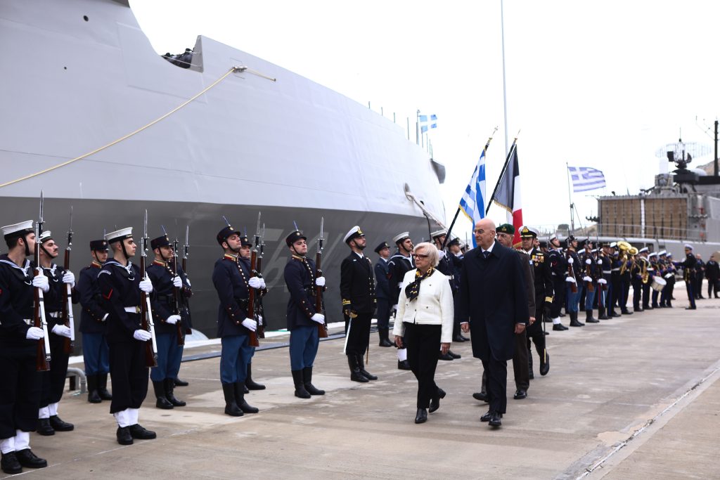 A symbolic meeting between Greece and France took place aboard the new Greek Belharra frigate, “Kimon”, as part of an official visit by France’s Minister of Armed Forces, Catherine Vautrin, to Athens. Greek Defense Minister Nikos Dendias hosted the discussions, signaling a deepening of the two countries’ military cooperation.
