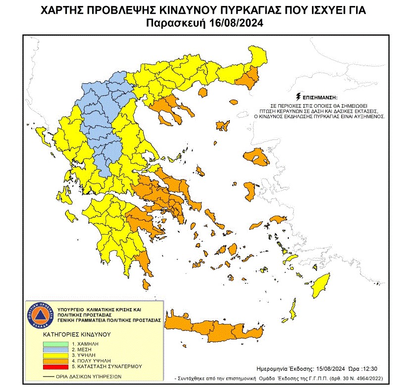 According to the General Secretariat for Climate Crisis and Civil Protection, the regions most are risk are the following: