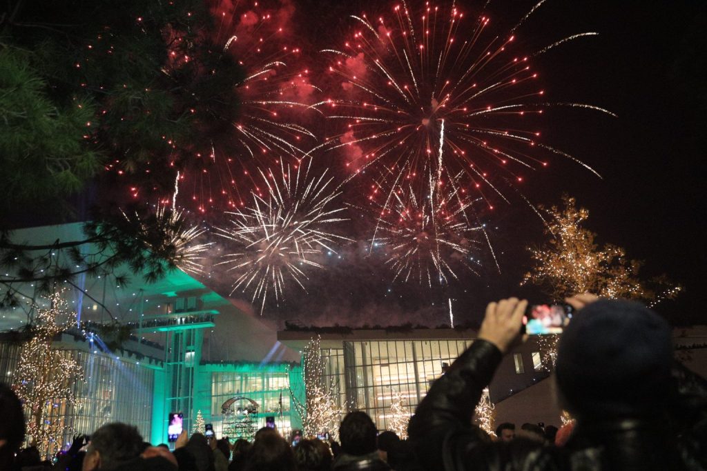 The annual countdown and New Year’s celebration in Athens was joined by similar events at the port of Piraeus, the Stavros Niarchos Foundation Cultural Center (SNFCC)and at the Pedion tou Areos park in central Athens, where the Attica regional government has set up a “Christmas Village” over the past month.