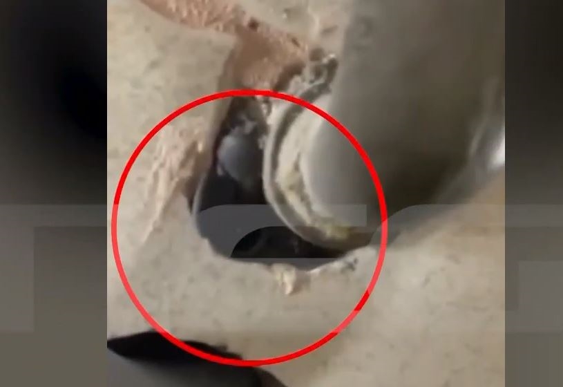 The first device was located behind a broken tile beneath a sink and where a pipe protrudes. A second was located above the ceiling, looking in through a hole covered by duct tape.