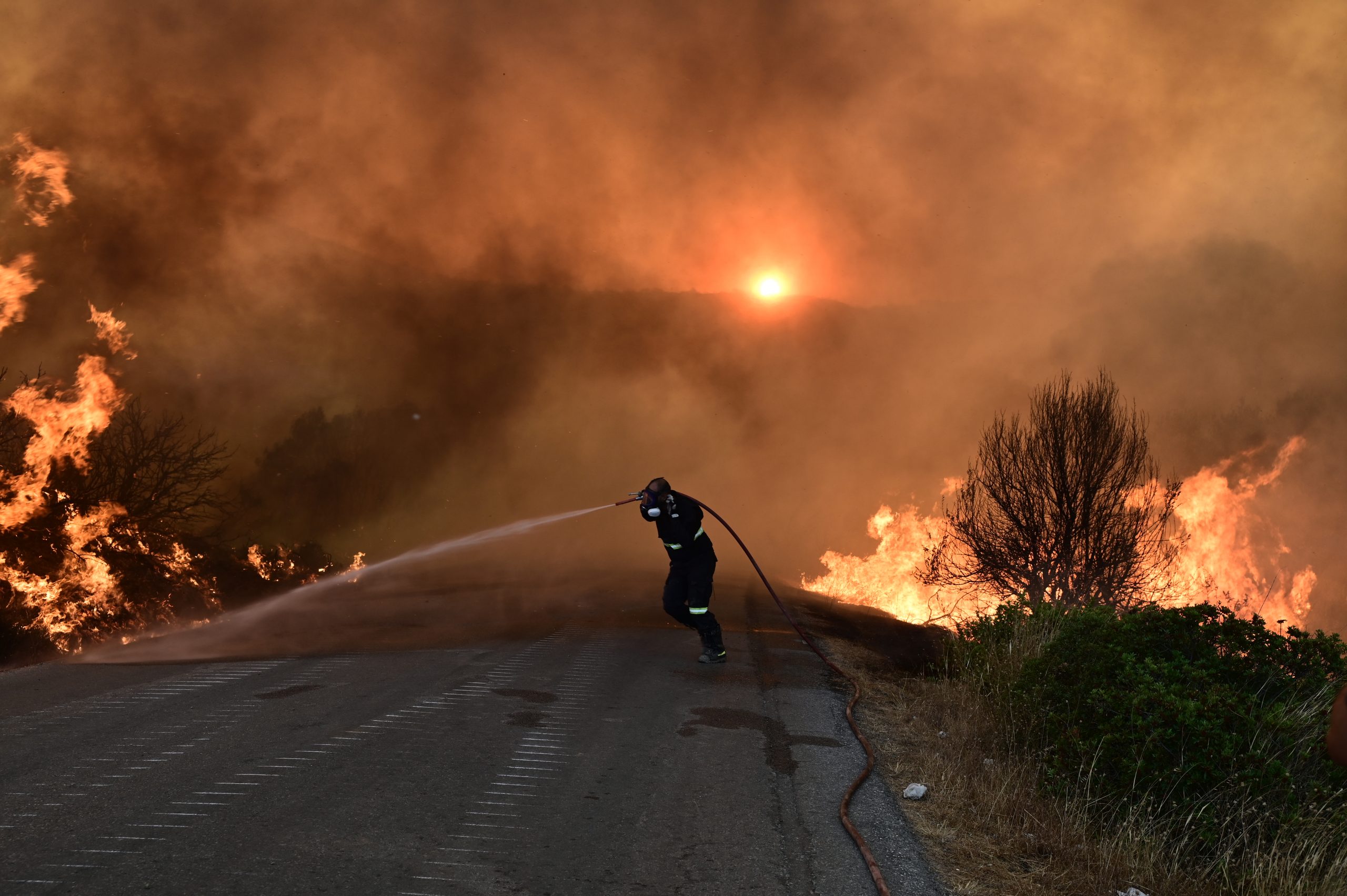 The wildfire in south-central Evia island ,raging over a large area for the second day with firefighters battling throughout the night to prevent it from spreading further, has been currently reported without active front.