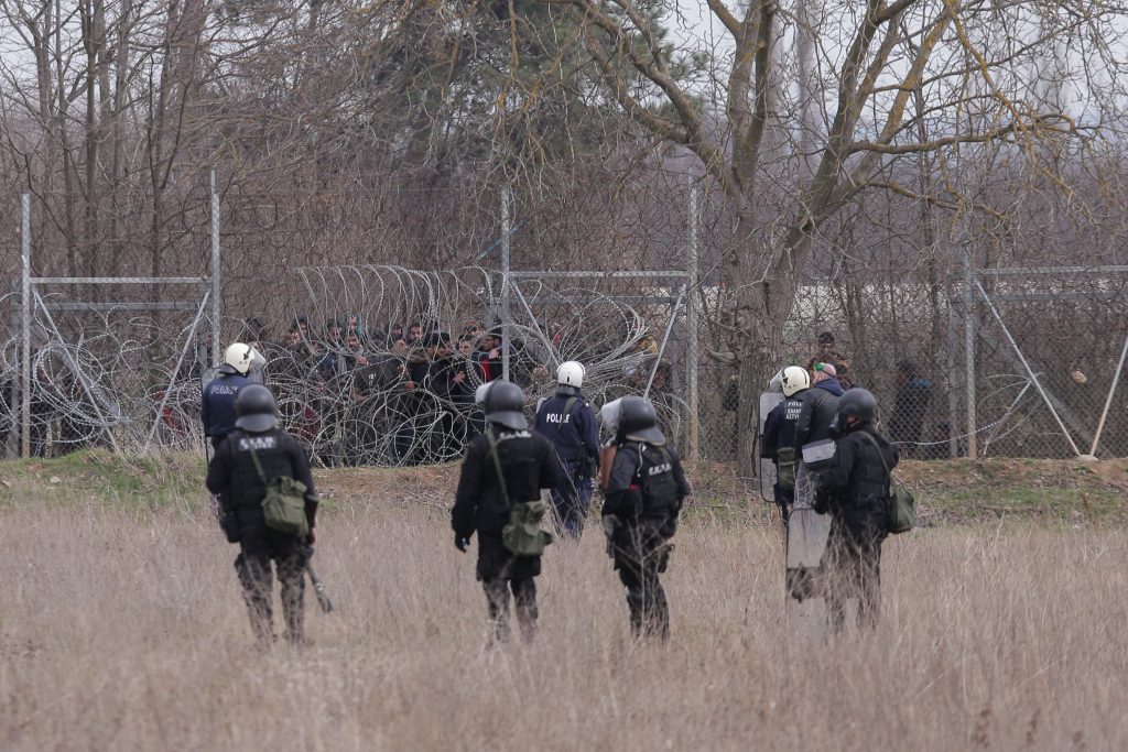 Clashes between asylum seekers, standing on Turkish territory, and Greek riot police at the buffer zone in Kastanies, Evros, at the Greek-Turkish frontier at the Evros River, on March 4, 2020. The Turkish government at the time said it would allow ‘free passage’ to refugees and migrants on its territory to try and reach Europe through Greece.