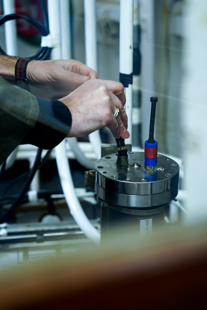 The vessel is also equipped with a device that allows the CTD instrument to measure the noble gas radon on-site, without the need for water analysis. This unique sensor is a Greek patent, developed years ago by the nuclear physicist and radiation specialist Christos Tsamparis. As he told us, “The device has been up and running since 2004, and fortunately, it continues to provide us with reliable data.”