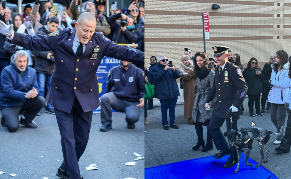 Greek NYPD Lieutenant John Pappas turned to his roots in celebration of handing in his badge after 26 years in the force. Friends, family and pups joined in to wish him a happy retirement by dancing traditional Greek “Zeibekiko” while listening to Greek songs like the world-famous tune “Zorbas” in a festive ceremony outside the Transit Bureau K-9 unit facilities in Long Island, New York.