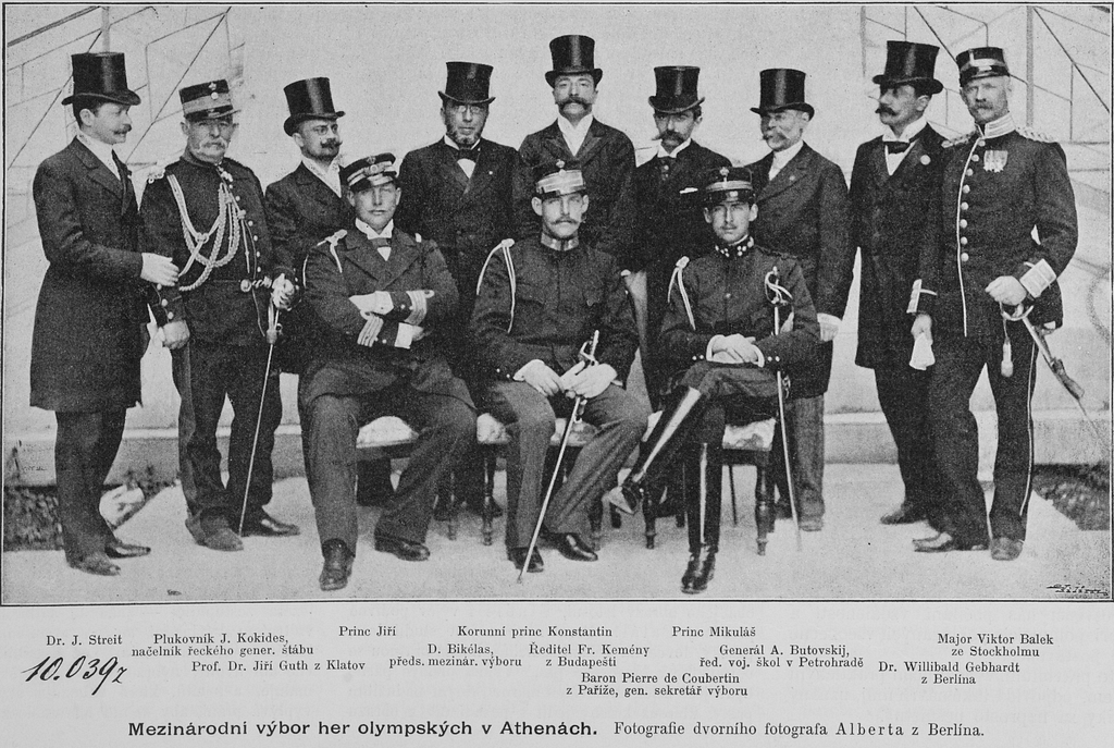 Members of an international committee for organization of 1896 Summer Olympics. 19/06/1896. Světozor, year 1895-6, issue 32, digitized by Czech Academy of Sciences