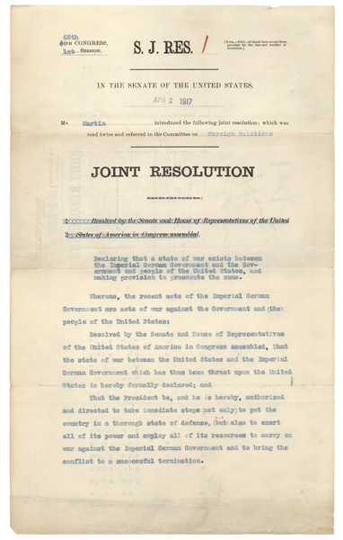 Although WWI had started in the summer of 1914, the US had remained neutral until 1917. However, due to a number of factors, including Germany’s unrestricted submarine warfare, the Zimmermann Telegram (a secret communication proposing an alliance between Germany and Mexico against the United States), and a desire to safeguard American economic interests, US President, Woodrow Wilson declared war on Germany April 6, 1917.