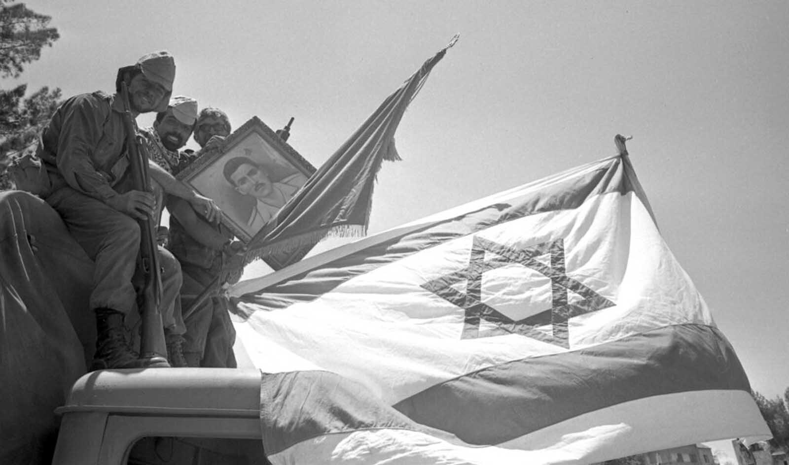 ARCHIVE PHOTO: 55 years ago, on June 5, 1967, the Six-Day War began. Victorious Israeli soldiers sit on a truck and present a picture of Gamal Abdel Nasser, Egyptian President, who started the Six-Day War by blocking the Strait of Tiran the Six-Day War between Israel and the Arab states of Egypt, Jordan and Syria lasted from June 5th to June 10th, 1967, photo not exactly dated c. June 14th, 1967, B/W photo, Photo by: SVEN SIMON/picture-alliance/dpa/AP Images