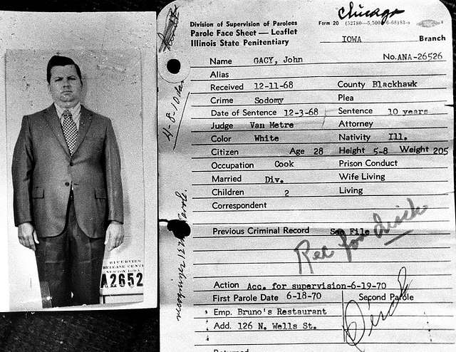 Serial killer John Wayne Gacy’s release paperwork from Iowa. Gacy was convicted on sodomy charges in 1968 but was released on parole in 1970. Wikimedia Commons